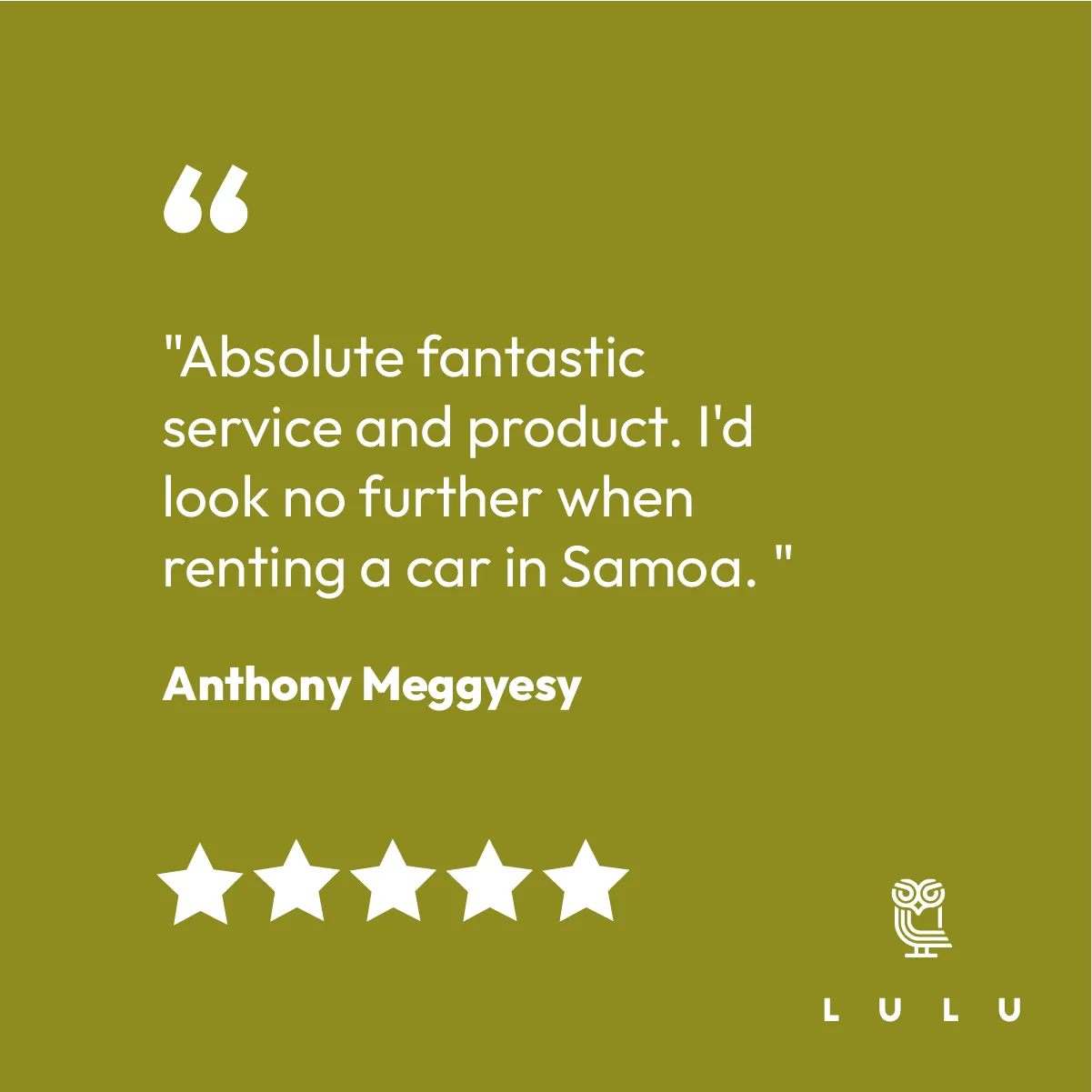 Discover Samoa, the Lulu Way! Located in the lush landscapes of Upolu, we bring easy and efficient car rentals right to your fingertips. Just like the wise owl we're named after—Lulu in Samoan—our service is all about making your island adventure smooth and memorable.